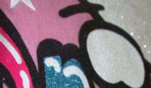 Partículas brillosas que realzan el diseño en un área determinada.